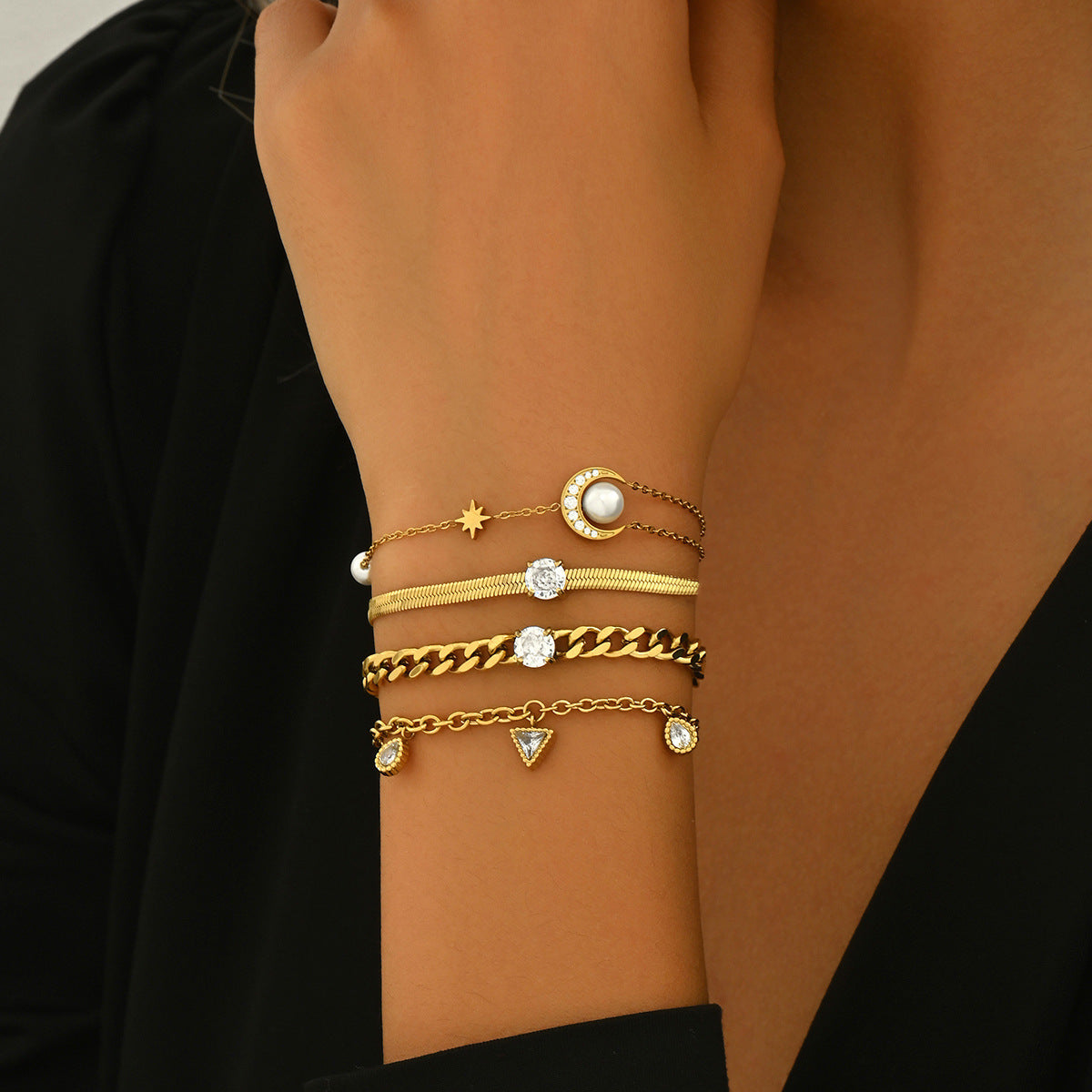 316 Stainless Steel 18K Gold Plated Clover Clasp Bracelet | Shell Accents with Full Crystals
