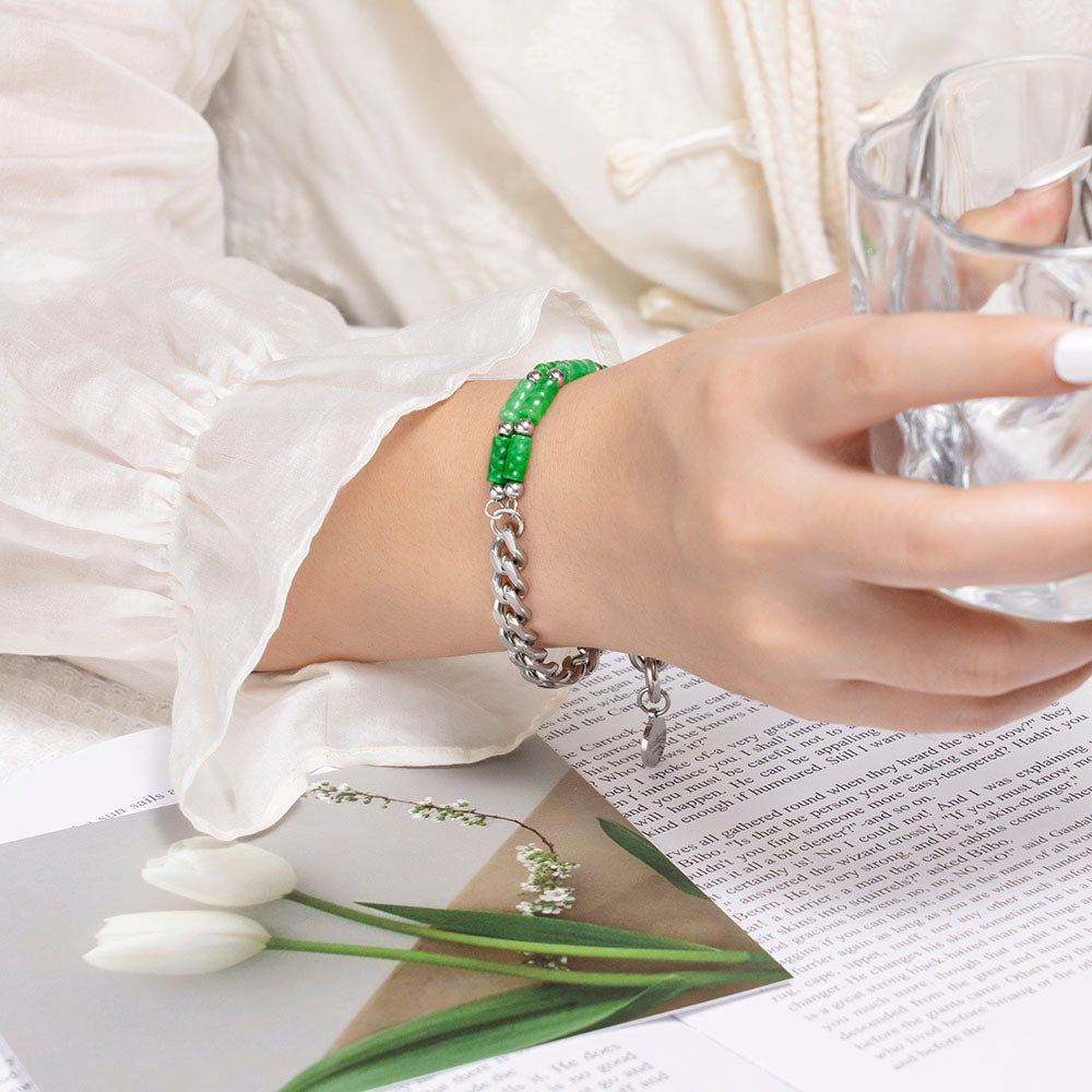 Green Bamboo Stone Layered Bracelet – Unisex Handmade Double-Layer Bamboo Stone Bracelet