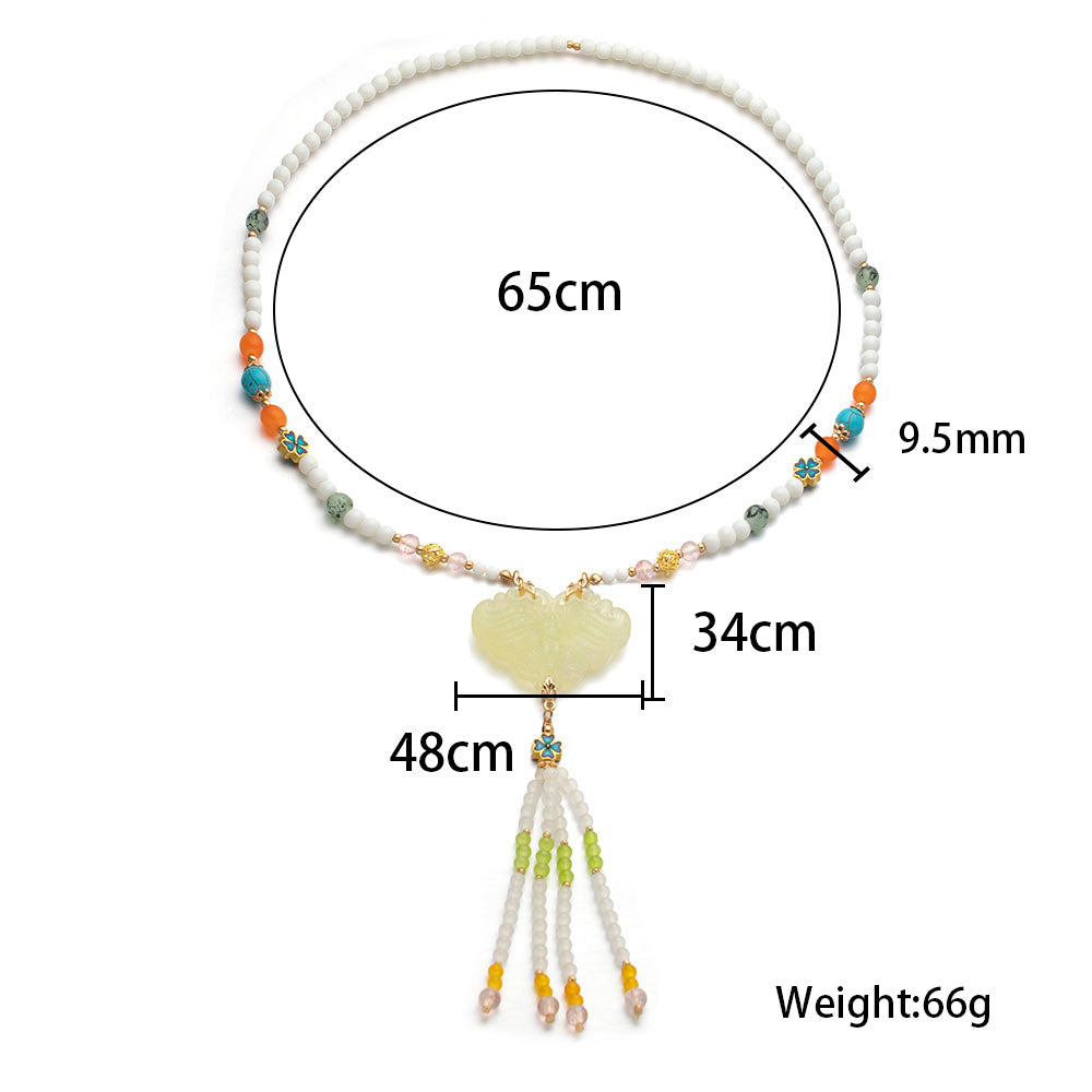 Natural Jade Long Necklace - Handmade Minimalist Gift for Her