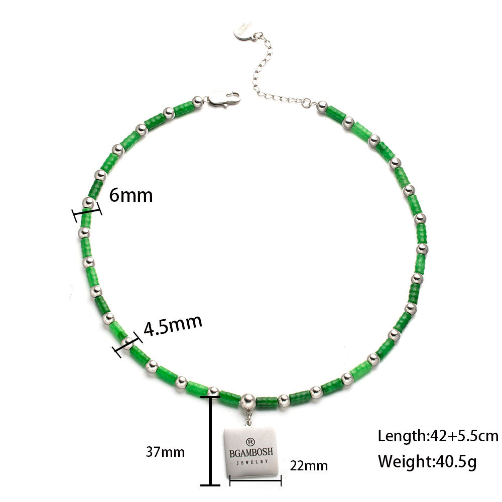 Bamboo Green Pendant Necklace with Green Bamboo Stone Beads and Stainless Steel Tag – Unisex Handmade Jewelry