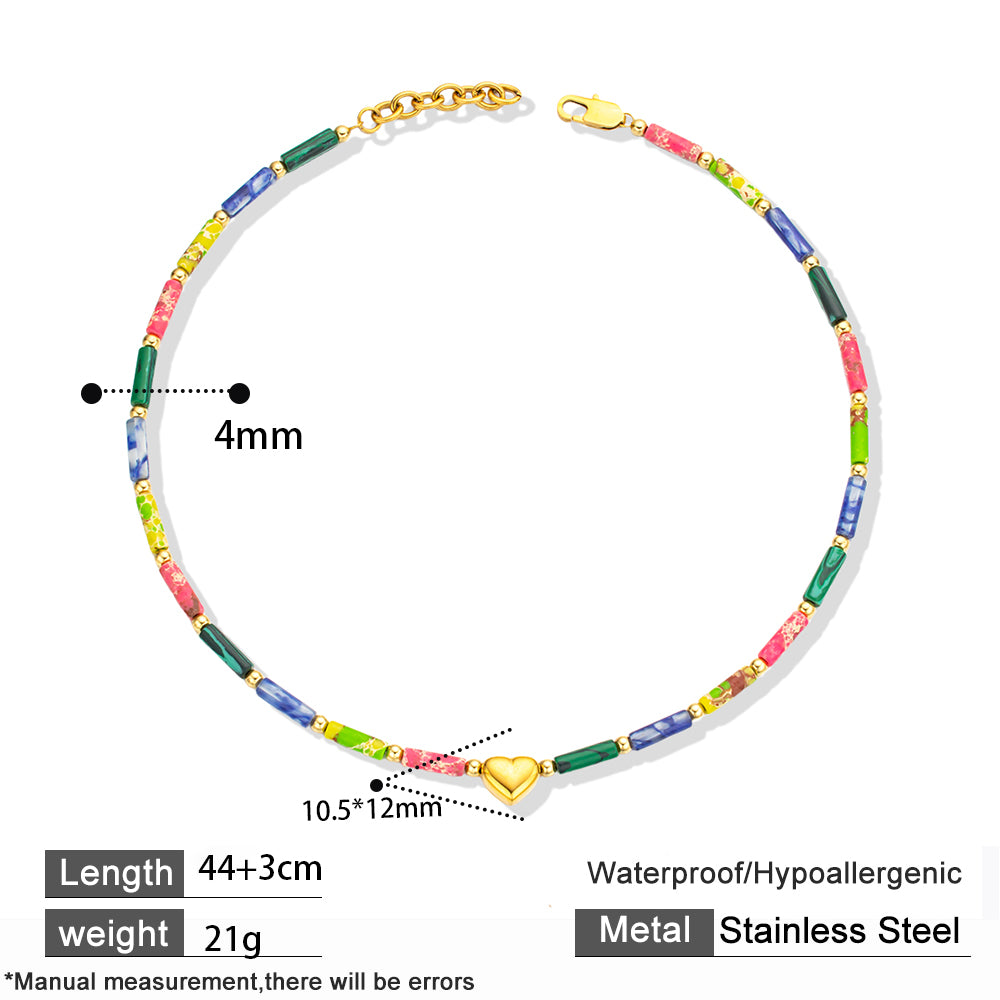 Rainbow Stone Necklace with Center Heart Pendant – Colorful & Charming Jewelry