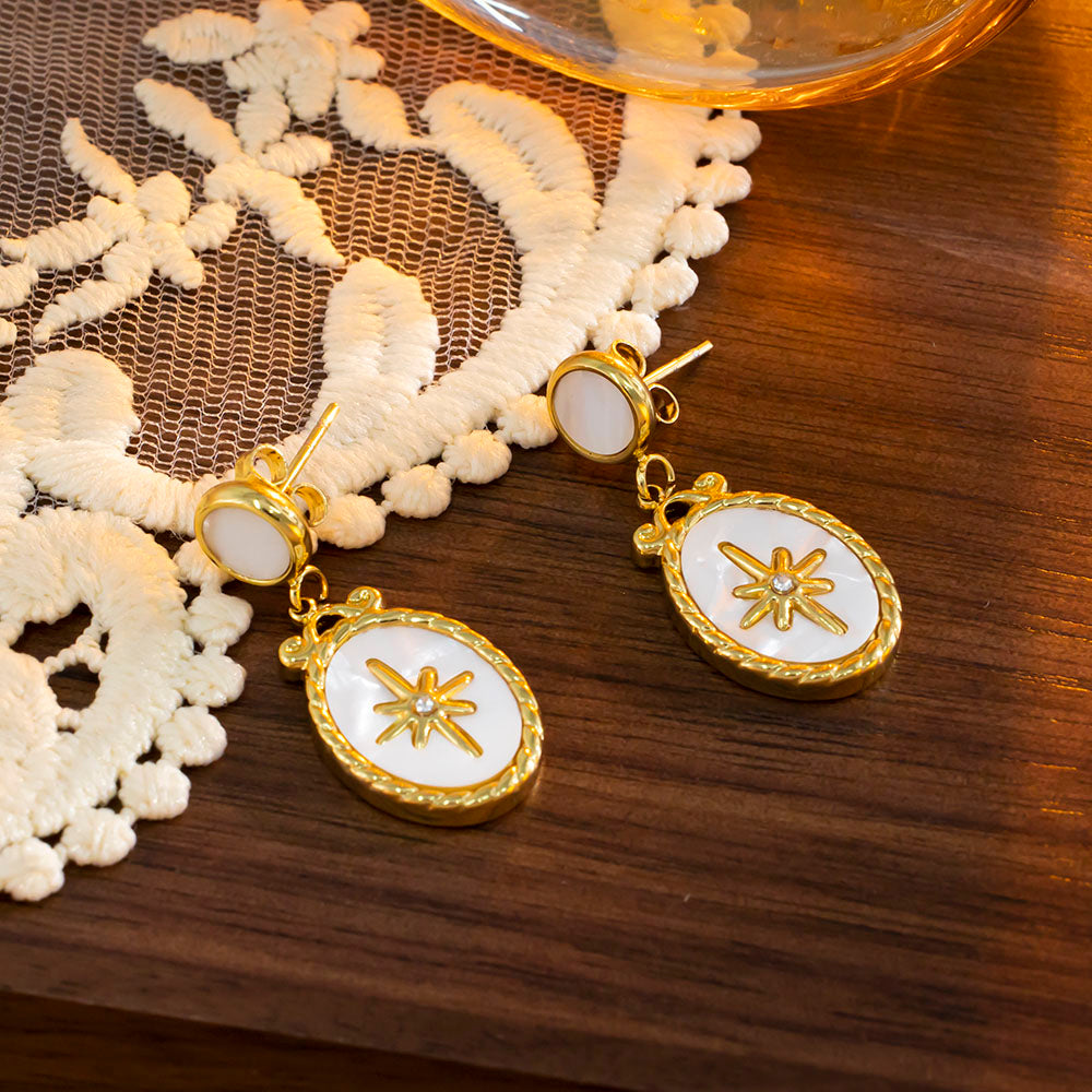 Crafted from 316 stainless steel with 18K real gold vacuum plating, these earrings feature a minimalist star pendant design, symbolizing beauty and luck. Durable and tarnish-resistant, they are perfect for everyday wear, adding a chic touch to any outfit, and an ideal accessory for various occasions.